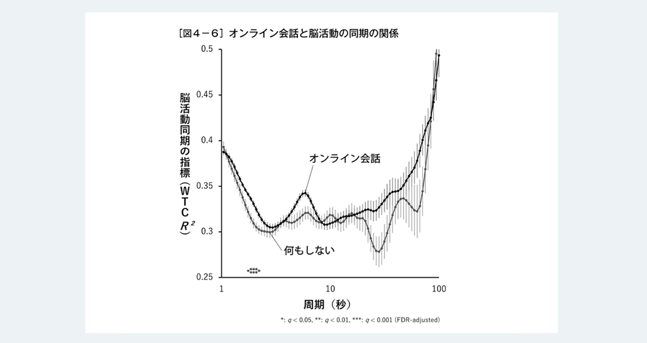 しかし、オンライン会議をしているときは、参加者同士の脳の同期が見られず、ひとりで静かにしているときの脳活動とほとんど同じ反応を示していました。